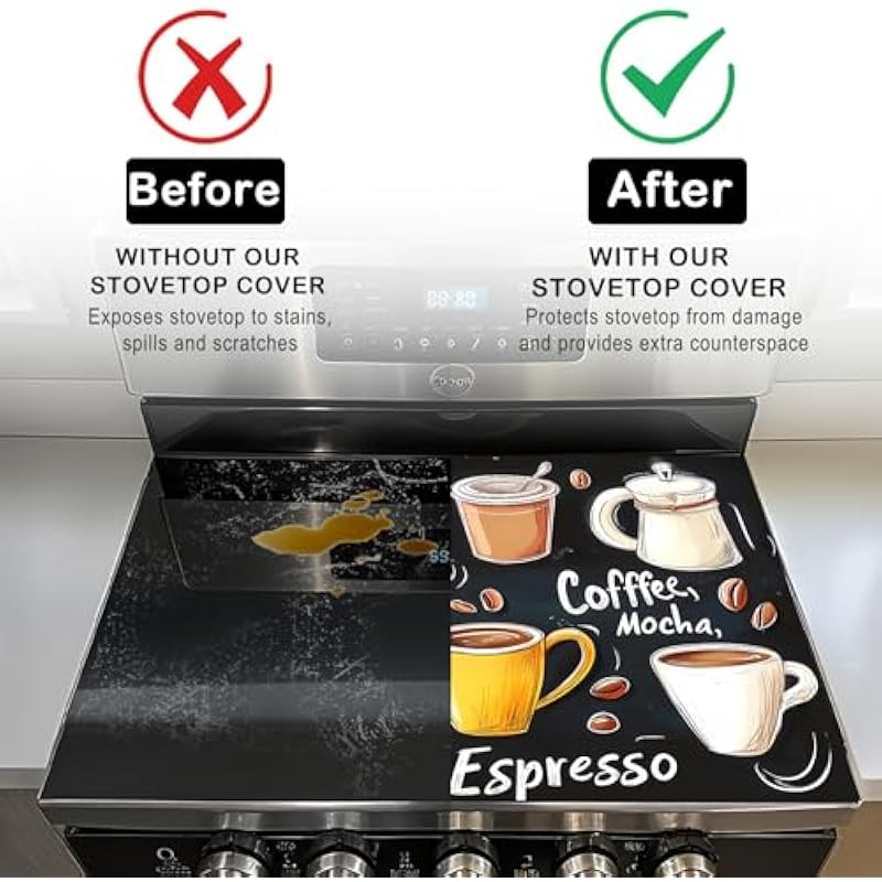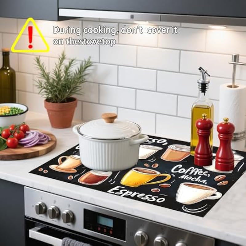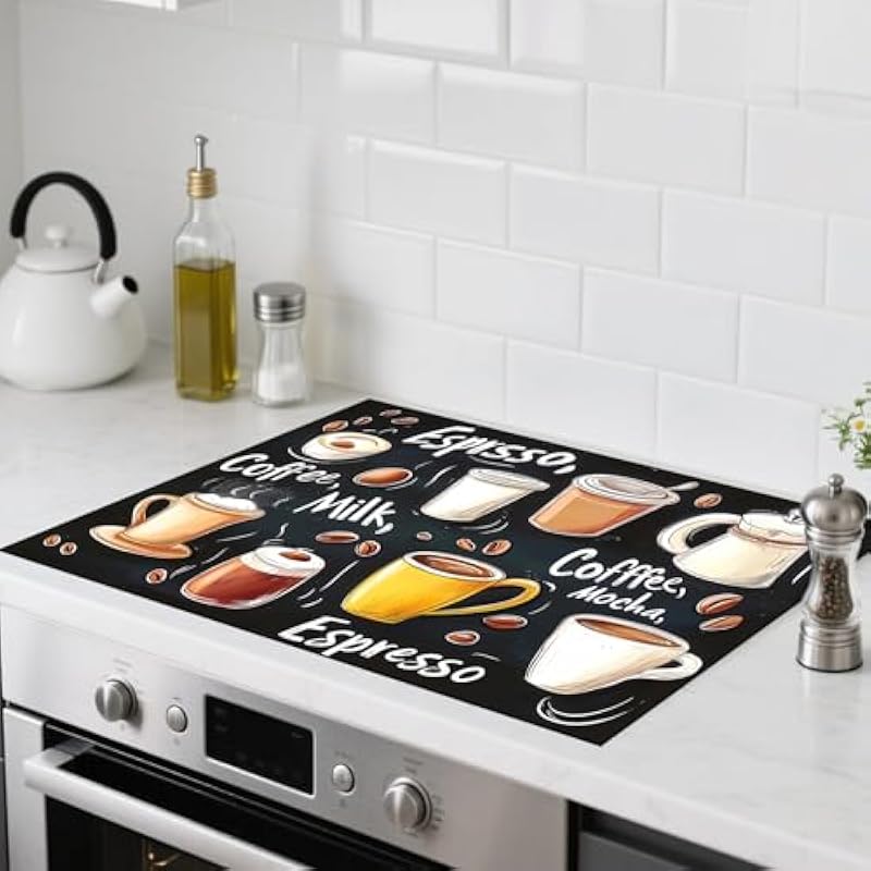 - 【What You’ll Get】A 20”x28” electric stove top cover with coffee drink and cup motifs, shielding your glass cooktop from scratches, spills, and dust while adding cafe-inspired charm.