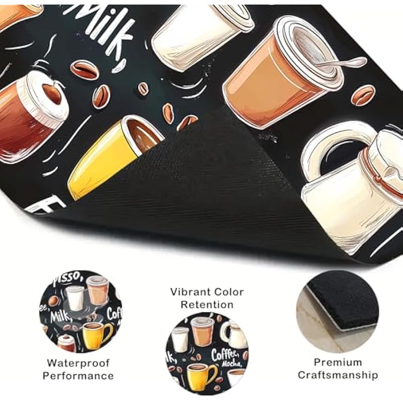 - 【Exquisite Craftsmanship】Features vibrant printing of coffee drinks and cups; its smooth, flat surface fits seamlessly on glass cooktops, merging culinary style and utility.