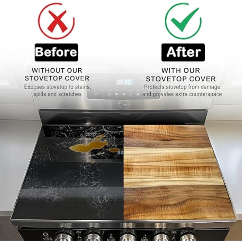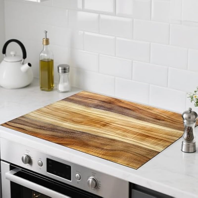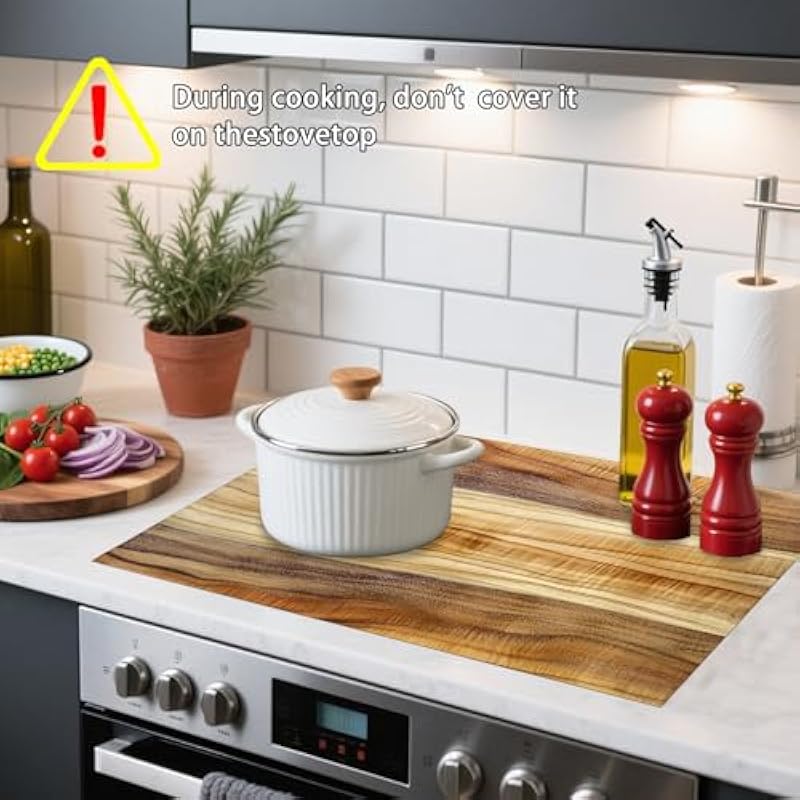 - 【What You’ll Get】A 20”x28” electric stove top cover with a dark gradient wood grain pattern, shielding your glass cooktop from scratches, spills, and dust while adding rich elegance.