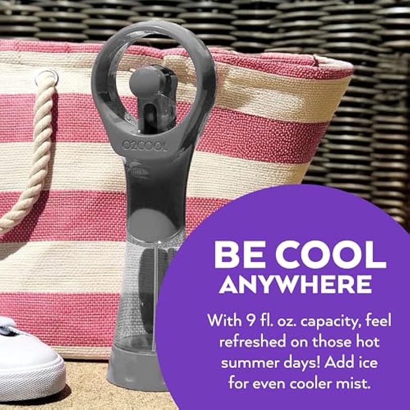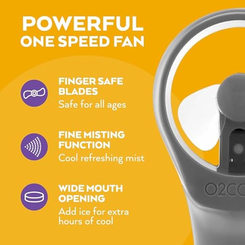 - COMFORTABLE COOLING MIST: Beat the heat with a personal cooling system. This portable misting fan from O2COOL offers a fine mist of cold water and a powerful fan.