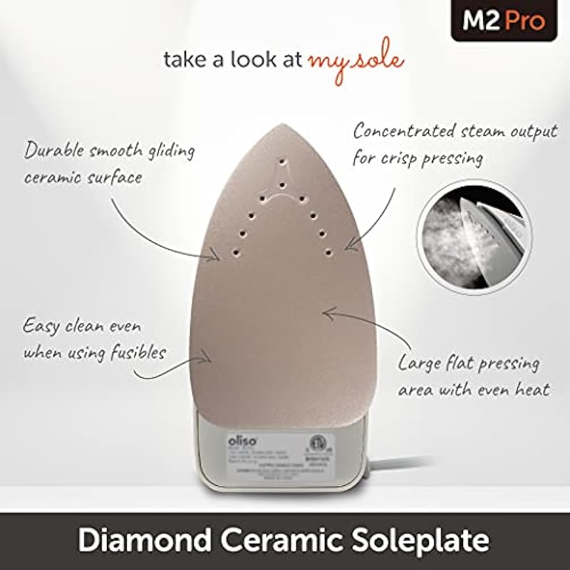oliso M2Pro Mini Steam Iron with Solemate® – 1000 Watt Dual Voltage Travel Iron for Sewing, Quilting, and Crafting – Ceramic Soleplate, Precision Tip – Butterscotch