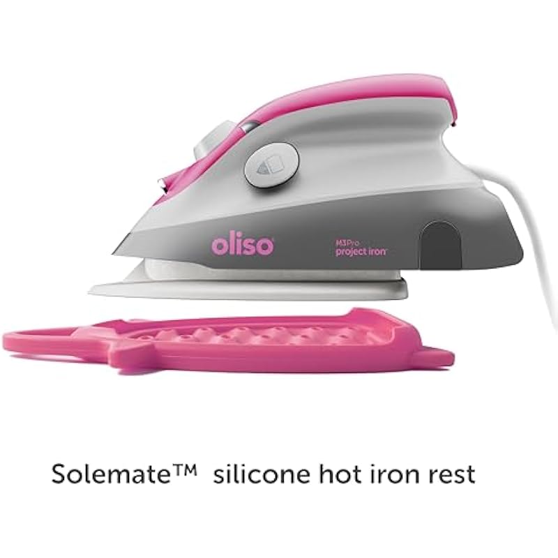 oliso M3Pro Project Steam Iron with Solemate – 1000W Ceramic Soleplate Iron and LED Light for Sewing, Quilting, Crafting, and Travel – Raspberry