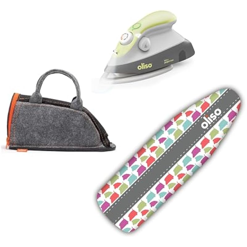 Oliso M3Pro Project Steam Iron with Solemate (Pistachio) + Oliso Carry Bag for Mini Irons + Oliso Ironing Board Cover (Silhouette)