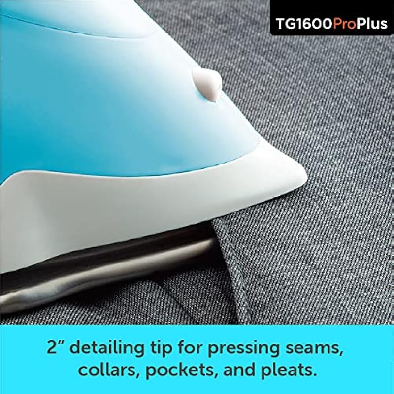 - BUILT FOR MAKERS: The TG1600+ features a 2″ precision detailer tip designed to glide into pleats, around buttons, along seams, and between layers, while the 12-foot, 360° swivel cord gives you flexibility wherever you work. The extended 30-minute auto shut-off is ideal for sewing and quilting projects that need uninterrupted heat.