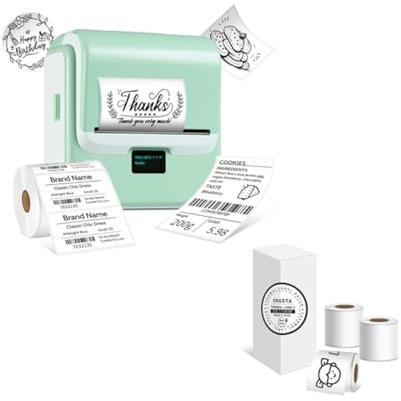 - Universal Compatibility: This portable thermal label maker with direct thermal technology, no ink or toner, ensuring a clean and convenient experience; Support label width 0.8″-3.15″ (20-80mm); Not only can use with fixed-size thermal labels, but also continuous thermal paper; This printer comes with one roll of 1.97″ x 1.18″ adhesive thermal label , containing 230 stickers for immediate use; ORGSTA label maker is fully compatible with any brand of thermal paper, avoiding the dependency with bra