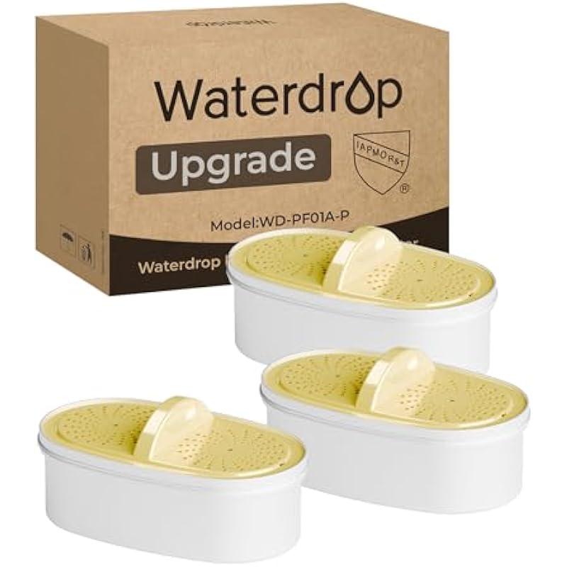 [Original] Waterdrop Upgrade NSF 53&42&372 Certified Replacement Filters, for All Waterdrop Pitcher and Dispenser, Reduces PFAS, PFOA/PFOS, Chlorine, Cadmium, Copper, Mercury, 3 Packs