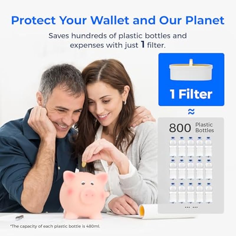 - [Longer Pure Water Enjoyment] Experience pure water for an extended period with this water filter by means of its 100G lifespan (When tested in accordance with the NSF’s protocol based on a 200 gallon filtration (double the rated usage)). By eliminating the need for thousands of plastic bottles, it not only saves you money but also contributes to preserving our planet.