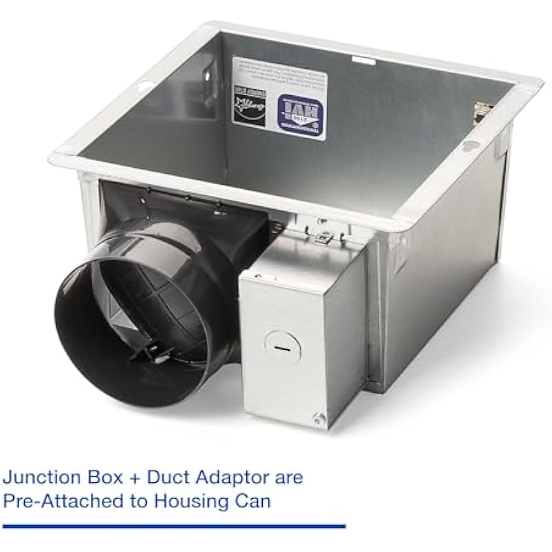 - Easy Installation: Junction box and duct adaptor come pre-attached to housing can; Works with 4″ ducts and fits where you need it, even in 2×6 construction