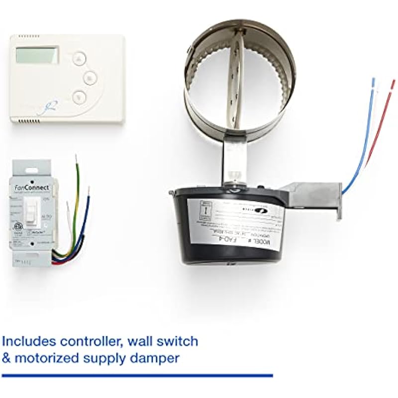 - Complete Kit: Includes a Programmable Wall Mounted Controller that shows system status, calculates run cycles and operation times, a 24VAC Motorized Supply Damper, and a Fanconnect Wall Switch that can be programmed from the controller