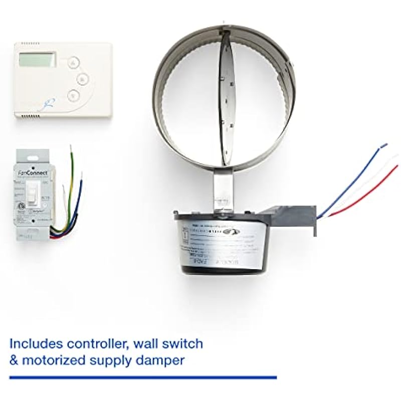 - Complete Kit: Includes a Programmable Wall Mounted Controller that shows system status, calculates run cycles and operation times, a 24VAC Motorized Supply Damper, and a Fanconnect Wall Switch that can be programmed from the controller