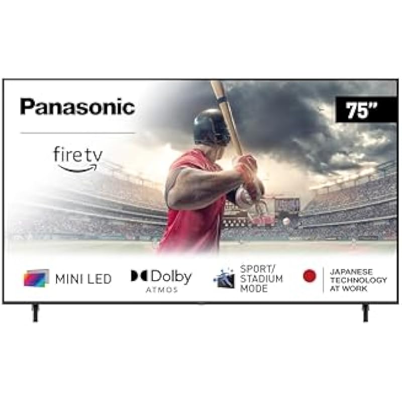 Panasonic W95 Series 75-inch Mini LED 4K Ultra HD Smart Fire TV, Sport Stadium Mode, ATSC3.0, Dolby Vision IQ, Dolby Atmos, HDR10+ Adaptive, Press and Ask Alexa, 144Hz, Wall-mountable – 75W95AP