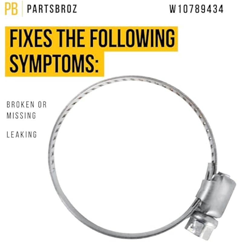 PartsBroz W10789434 Drain Hose Clamp – Compatible With Whirlpool Kenmore KitchenAid Maytag Dishwasher – Replaces AP5971447 W10169167 4282940 PS11703368 W10736523 W10763498 W10789434VP
