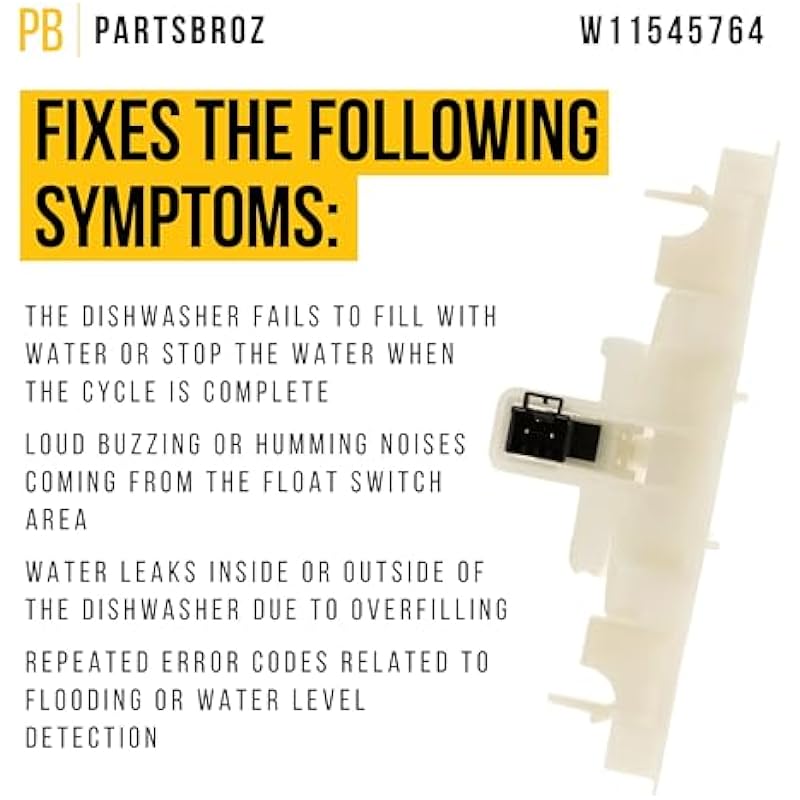 PartsBroz W11545764 Float Switch – Compatible With Whirlpool Maytag KitchenAid Admiral Dishwasher – Replaces AP7017824 W11255994 W11036170 PS16555330 Ultra Durable Replacement