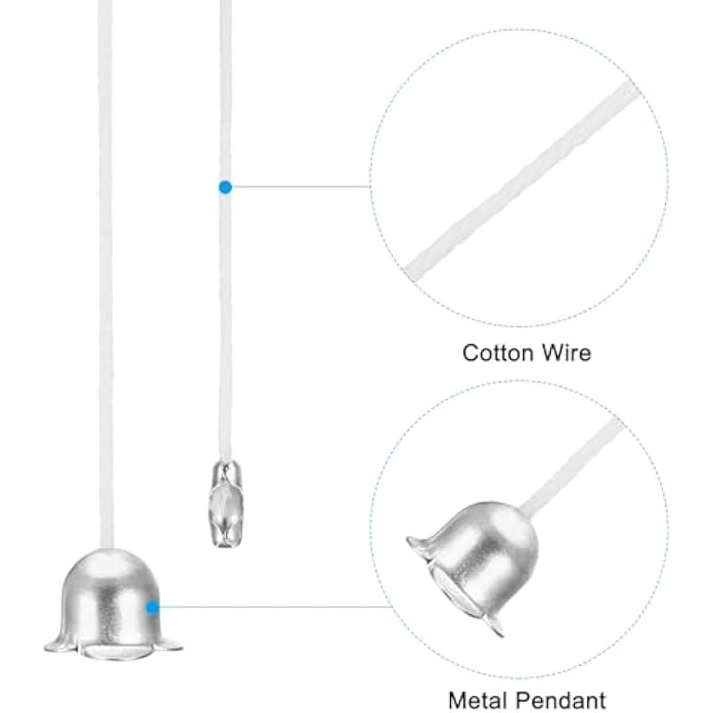 - Material:Cotton, Metal,Length: 1.5M/ 4.9ft,Pendant Size:10.5x 8mm (Lx W)/ 0.41 x 0.31inch,Color: White, Silver Tone, Packing List:4 x Ceiling Pull Chain