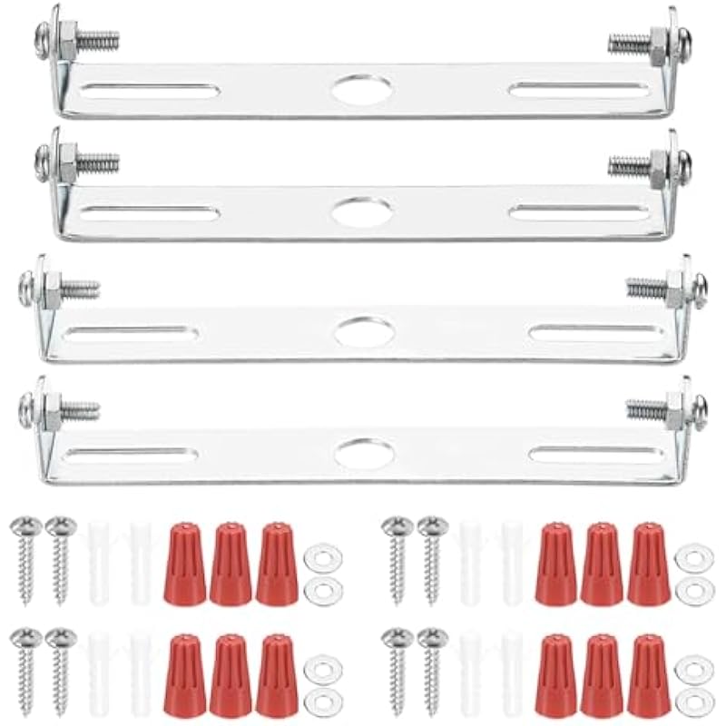 - Material: Galvanized Carbon Steel; Length: 105mm/4.13 inch; 115mm/4.53 inch (2 Set Each Size); Overall Size: 18x15mm / 0.7×0.6 inch (W*H); Center Hole Dia: 10.4mm/ 0.4 inch; Board Thickness: 1.5mm / 0.06 inches; Packing List: 4 Set x Ceiling Light Plate (Screws, Nuts, Plugs, Wiring Caps and Washer Included)