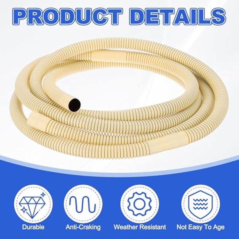 - Hose Length: 3 m/ 9.84 feet; Hose Outer Diameter: 17.5 mm/ 0.69 Inch; Hose Inner Diameter: 15.5 mm/ 0.61 Inch; Suitable for 16mm-18mm (0.6″ – 0.7″) inner diameter hose; Packing List: 1 x Drain Hose, 2 x Clamps, 1 x Straight Connector, 1 x Tape