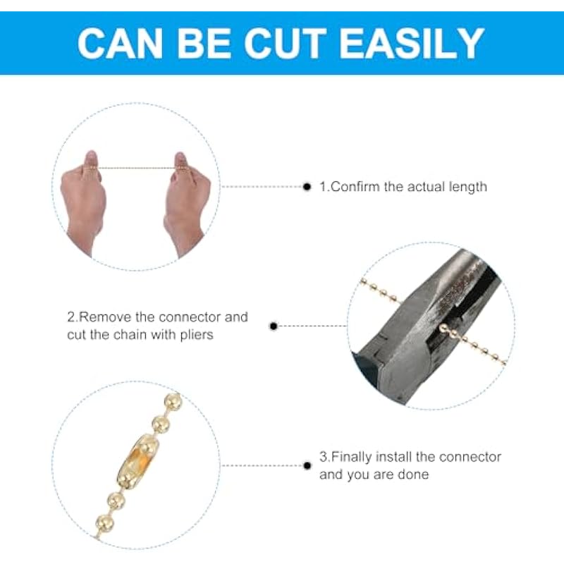 - Instructions: The length of the ceiling fan zipper can be adjusted as needed. You can remove the connector first, cut it shorter with pliers, then reattach the connector and it’s ready for use.