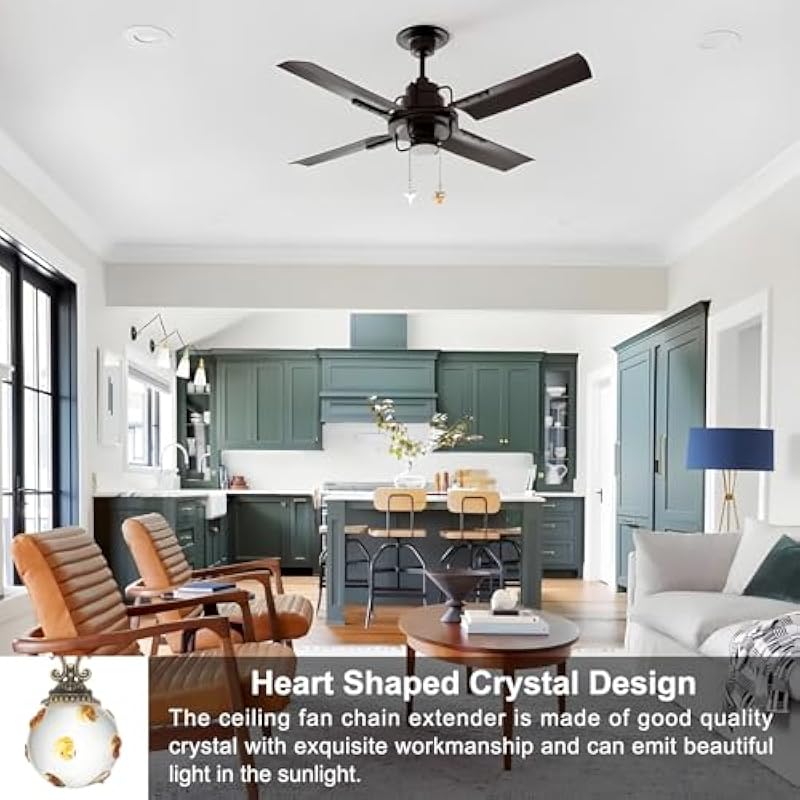 - Instruction: The length of the ceiling fan pull chain can be slightly adjusted according to your needs. You can remove the connector first, then use professional pliers to cut it short, and then install the connector back.