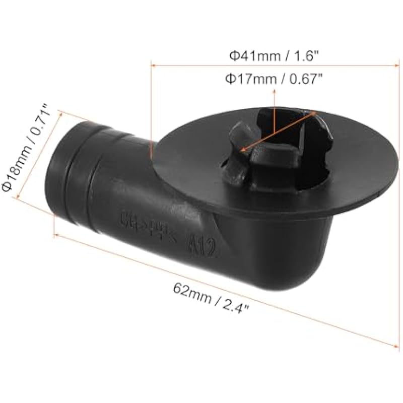 - Color: Black; Material: Plastic; Suitable for 17mm Drain Outlet Hole.; Diameter (Connecting Hose Size):18mm/0.71″; Connector Size: 62x41mm / 2.4×1.6Inch (L*W); Packing List: 4 x Hose Connector, 4 x Clamp