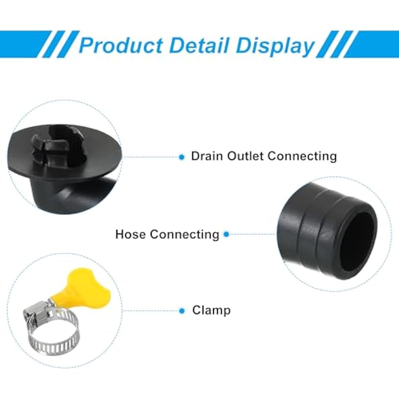 - Instruction:Designed with adapter head, allows you to connect it to drain pipe with diameter from 15mm to 20mm. The package comes with a clamp, fix the drain hose to the drain outlet of AC units with the clamp, which can help you quickly complete the installation without other tool