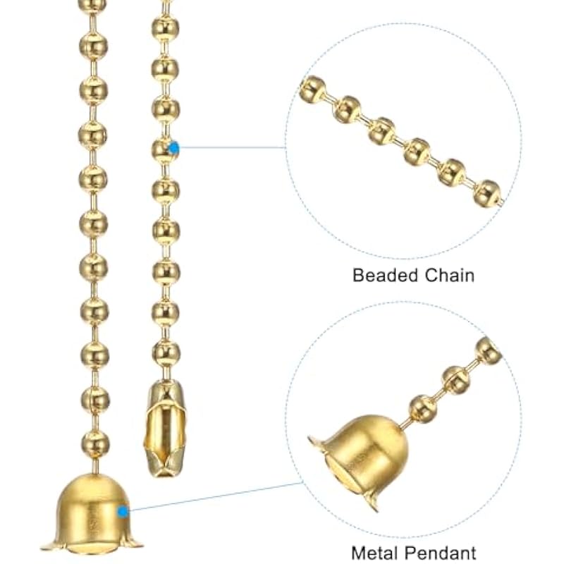 - Material: Metal, Length: 1m/ 3.3ft, Bead Diameter: 3mm/ 0.12inch, Pendant Size: 8 x 10.5mm(L x W)/ 0.31 x 0.41inch, Color: Gold Tone, Packing List: 4 x Ceiling Fan Pull Chain