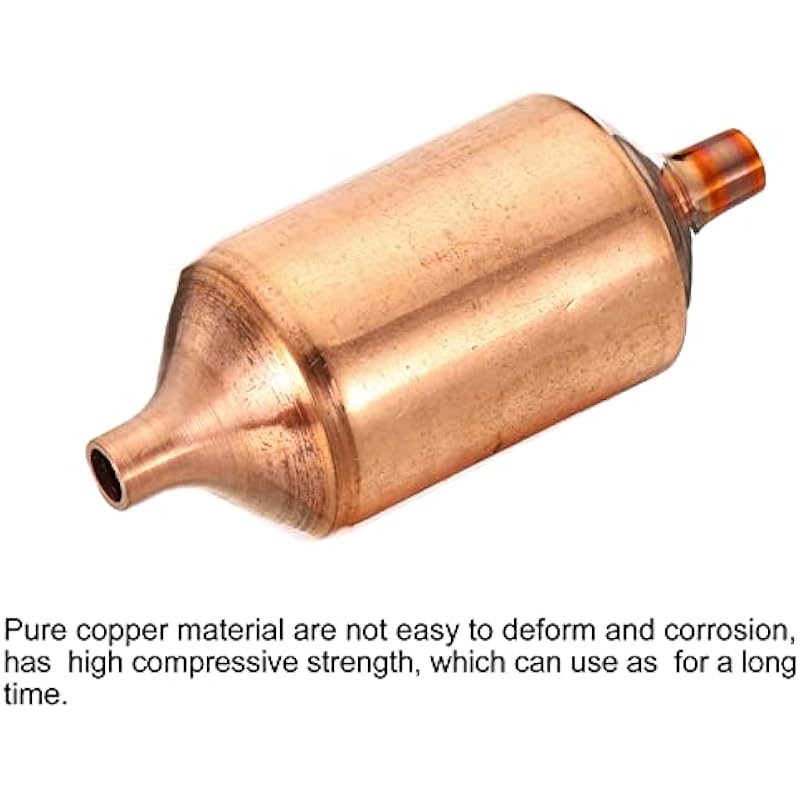 - Color: Copper; Material: Pure Copper; Connection Inner Diameter: 6mm / 0.24 inch; Connection Outer Diameter: 9mm / 0.35 inch; Total Size: 37 x 95mm / 1.46 x 3.74inch(OD*L); Package List: 1 x Filter Drier