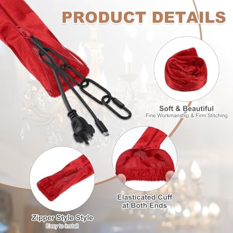 - Specification: Color: Red; Material: Velvet Cloth; Size: 80 x 5cm / 2.6ft x 2inch (L*W); Style: Zipper; Packing List: 1 x Chandelier Chain Cord Covers