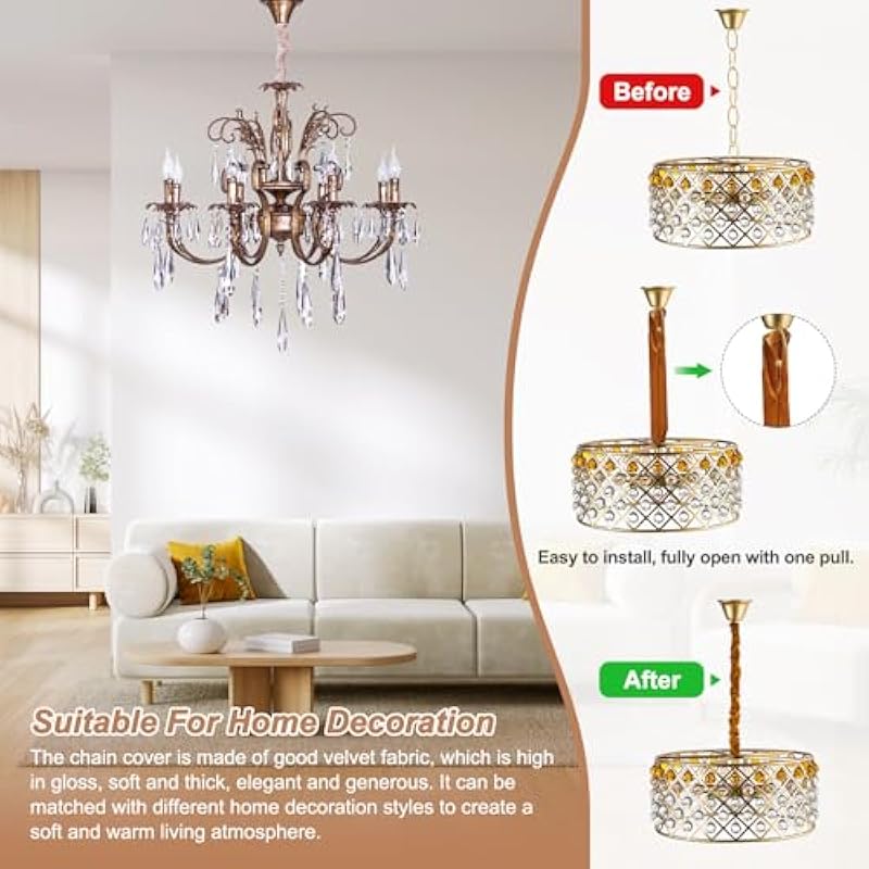 - Advantage: The chain cover is made of velvet cloth material, which is soft and beautiful. Fine workmanship and firm stitching. It can also be used as a decoration while protecting the lamp holder. The chain cover has an elastic design at both ends, which makes it not easy to fall when hanging vertically.