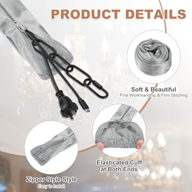 - Specification: Color: Gray; Material: Velvet Cloth; Size: 100 x 5cm / 3.3ft x 2inch (L*W); Style: Zipper; Packing List: 2 x Chandelier Chain Cord Covers