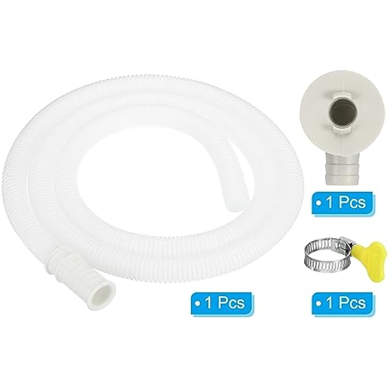 - Color: White; Material: Polyethylene; Suitable for 15mm Drain Outlet Hole; Hose Inner Diameter: 16mm / 0.63 Inch; Hose Length: 1.5m / 4.9ft; Connector Size: 52x38x27mm / 2×1.5×1.06Inch (L*W*H); Connector Outer Diameter: 15mm / 0.59Inch; Packing List: 1 x Drain Hose, 1 x Hose Connector, 1 x Clamp