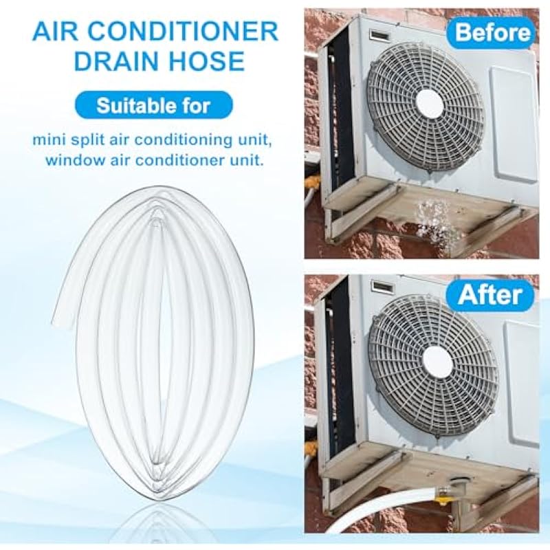 - Instruction:Designed with adapter head, allows you to connect it to drain pipe with diameter from 15mm to 20mm. The package comes with a clamp, fix the drain hose to the drain outlet of AC units with the clamp, which can help you quickly complete the installation without other tool