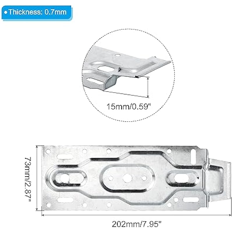 - Material: Galvanized Iron; Color: Silver; Thickness: 0.7mm / 0.03 inch; Total Size: 202x73x15mm / 7.95 inch x 2.87 inch x 0.59 inch (L*W*H); Suitable for 1-3P (9000~26000BTU) wall-mounted internal unit; Package Content: 2 Pair(4pcs) x Air Conditioner Wall Mount Bracket; 20 x Screws