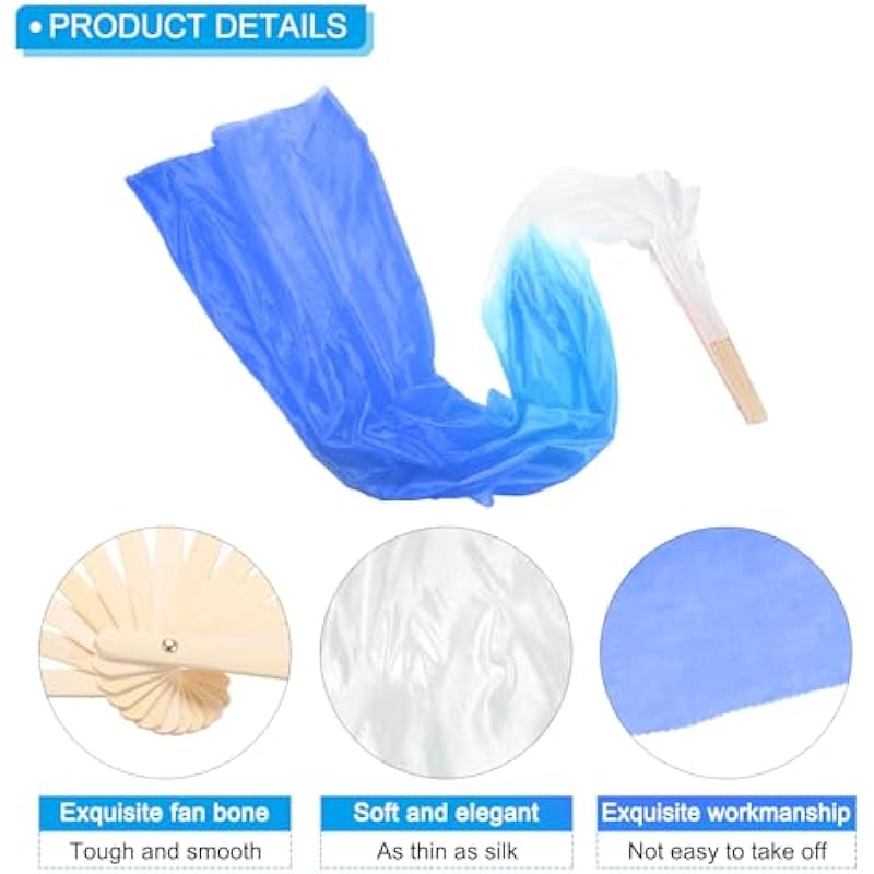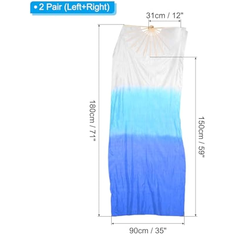 - Size: Color: White Gradient Blue; Material: Silk fan face, wooden fan bone; Size: 180 x 80cm / 71 x 31inch(L*W); Fan bone Length: 31mm/12inch; Packing List: Belly Dance Silk Fan x 2 Pair (Left+Right)