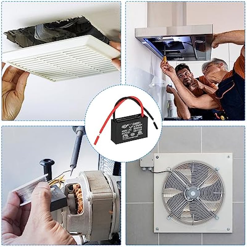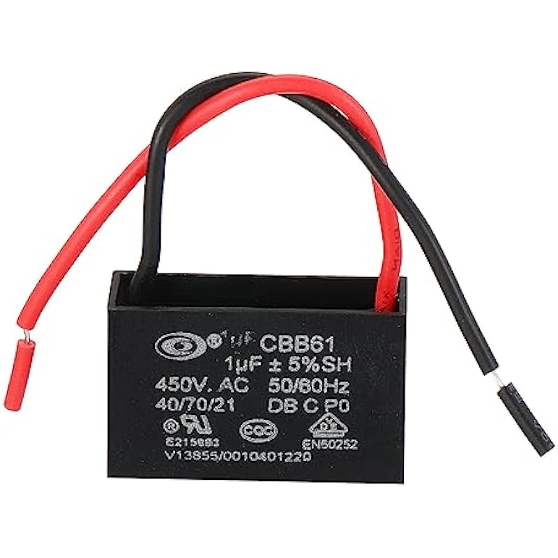 - Model: CBB61; Material: Polypropylene Film Plastic Shell; Terminal: 2 Wires; Tolerance: ±5%; Rated Capacity: 1uF; Climatic Category: 40/70/21; Body Size:37 x 23 x 23mm/1.44 x 0.9 x 0.9 inch(L x W x H); Wire Length:9cm/3.51inch; Shell Color: Black; Rated Voltage: 450V AC; Rated Frequency:50/60Hz; Pack of 10Pcs CBB61 Capacitor