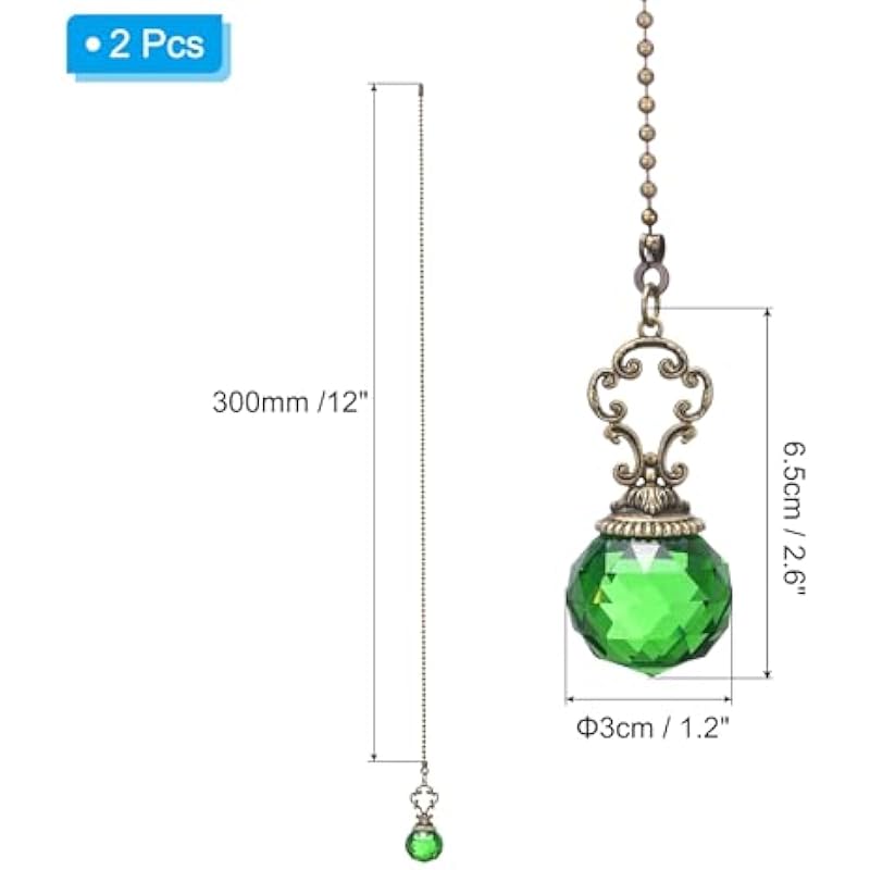 - Color: Transparent; Chain Material: Metal; Pendant Size: 30 x 65mm / 1.2 x 2.6 inch(D*L); Chain Length: 300mm /12 inch; Packing List: 2 x Pull Chains for Ceiling Fans and Lights