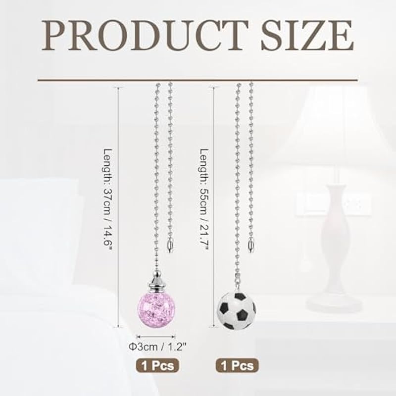 - Advantage: The ceiling fan pull chain extender is made of durable metal material, which is strong, durable, rustproof, wear-resistant and can be used for a long time. The sports ball design is perfect for sports enthusiasts to decorate rooms.