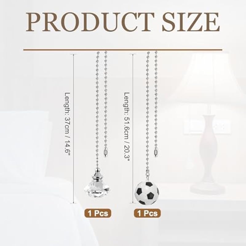PATIKIL Ceiling Fan Pull Chain, 2 Pack Crystal Diamond/Soccer Pull Chain Extension Fan Pulls Extender Set Ornament Pendant for Ceiling Light Lamp, Clear/White