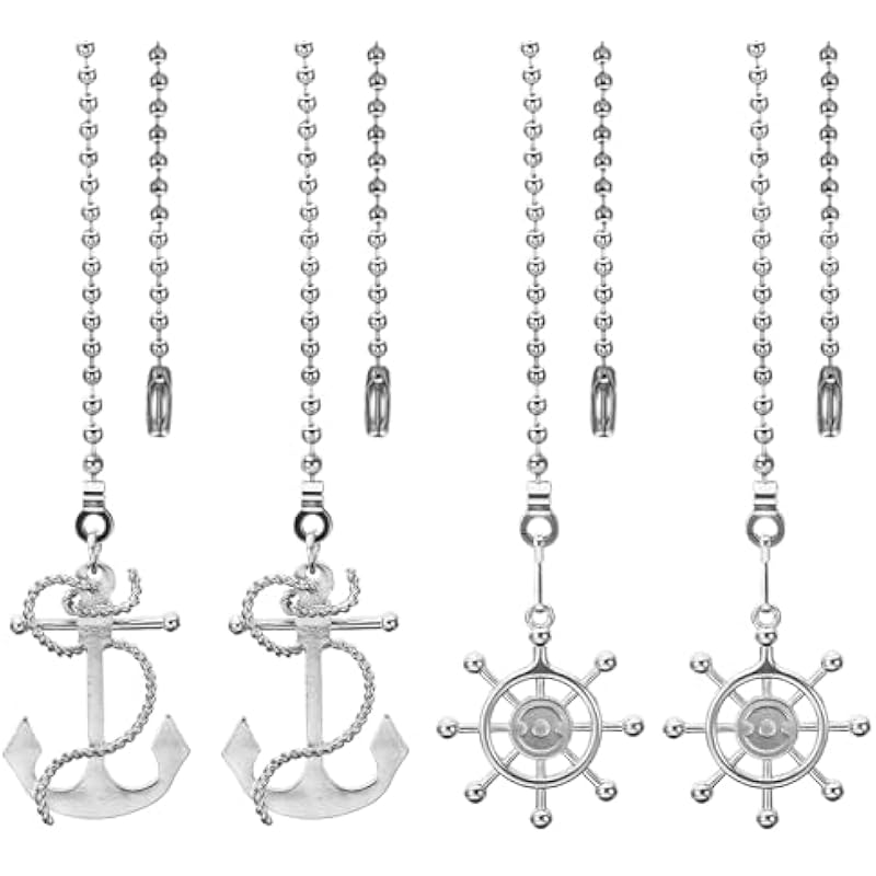 PATIKIL Ceiling Fan Pull Chain, 4Pcs 12.2″ Decorative Anchors and Wheel Pendant Chain Extender Charm Extension for Ceiling Fans Light Lamp, Silver