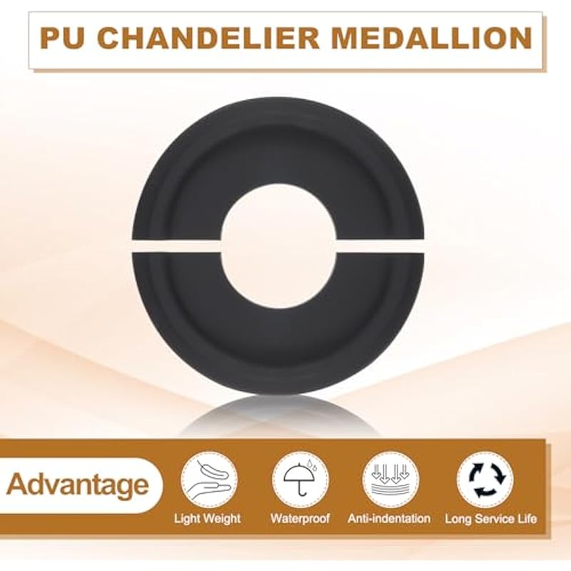 - Advantage: The ceiling medallion is made of good PU material, which is light and will not exert great pressure on the ceiling. the product is dense, pressure-resistant, durable, long service life, and is not easy to crack. The ceiling medallion have neat and smooth edges, exquisite and elegant patterns, and are highly decorative, providing an elegant decorative background for chandeliers and lighting fixtures. This product can be matched with other decorations to add a touch of different charm t