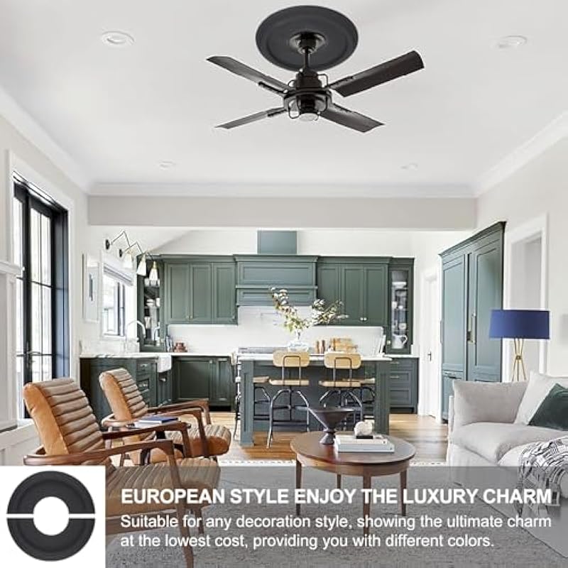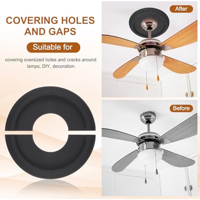 - Our ceiling medallion can flexibly cover oversized openings, holes and cracks around oversized fixtures in the ceiling. The elegant appearance can adapt to various decorative styles. They are widely used in many occasions such as ceilings, ceiling fans and lamps, suitable for DIY decoration. Instant renovation with minimal time and effort.