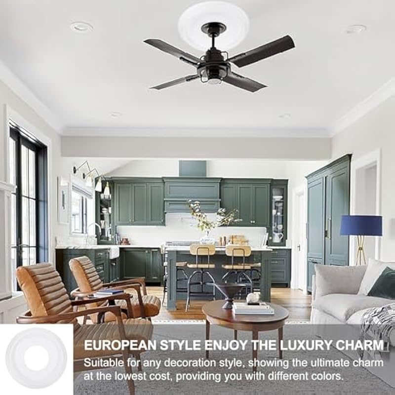 - Our ceiling medallion can flexibly cover oversized openings, holes and cracks around oversized fixtures in the ceiling. The elegant appearance can adapt to various decorative styles. They are widely used in many occasions such as ceilings, ceiling fans and lamps, suitable for DIY decoration. Instant renovation with minimal time and effort.