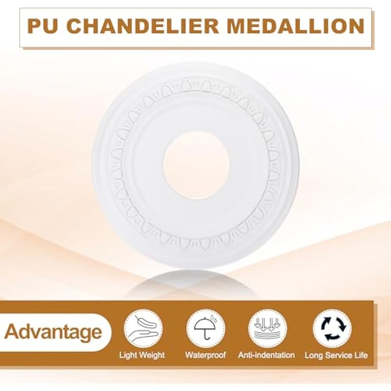 - Advantage: The ceiling medallion is made of good PU material, which is light and will not exert great pressure on the ceiling. the product is dense, pressure-resistant, durable, long service life, and is not easy to crack. The ceiling medallion have neat and smooth edges, exquisite and elegant patterns, and are highly decorative, providing an elegant decorative background for chandeliers and lighting fixtures. This product can be matched with other decorations to add a touch of different charm t