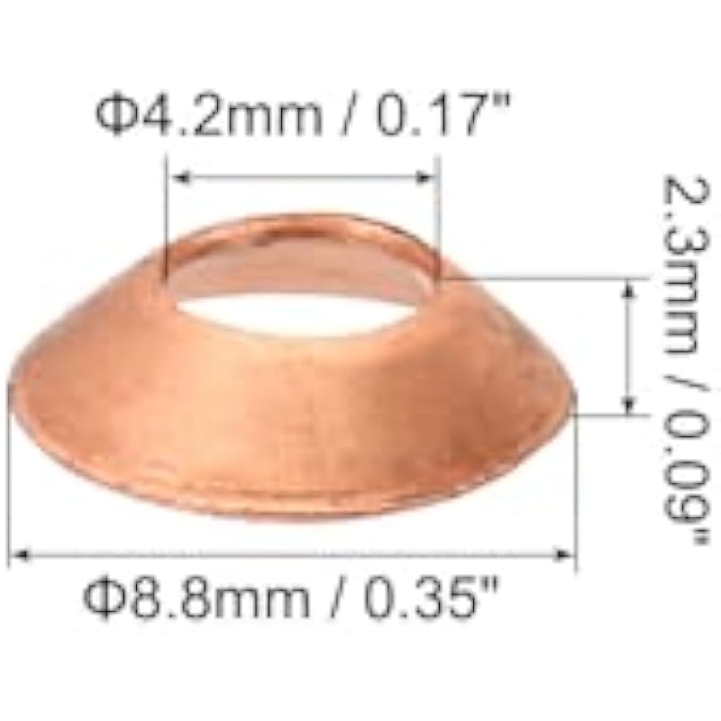 - Specification: Material: Copper; Color: Copper Color; Size: 8.8 x 4.2 x 2.3mm / 0.35 x 0.17 x 0.09inch (Outer Dia x Inner Dia x H); Application: Suitable for 1/4″ Tube OD Size; Package List: 10Pcs x Copper Flare Gasket