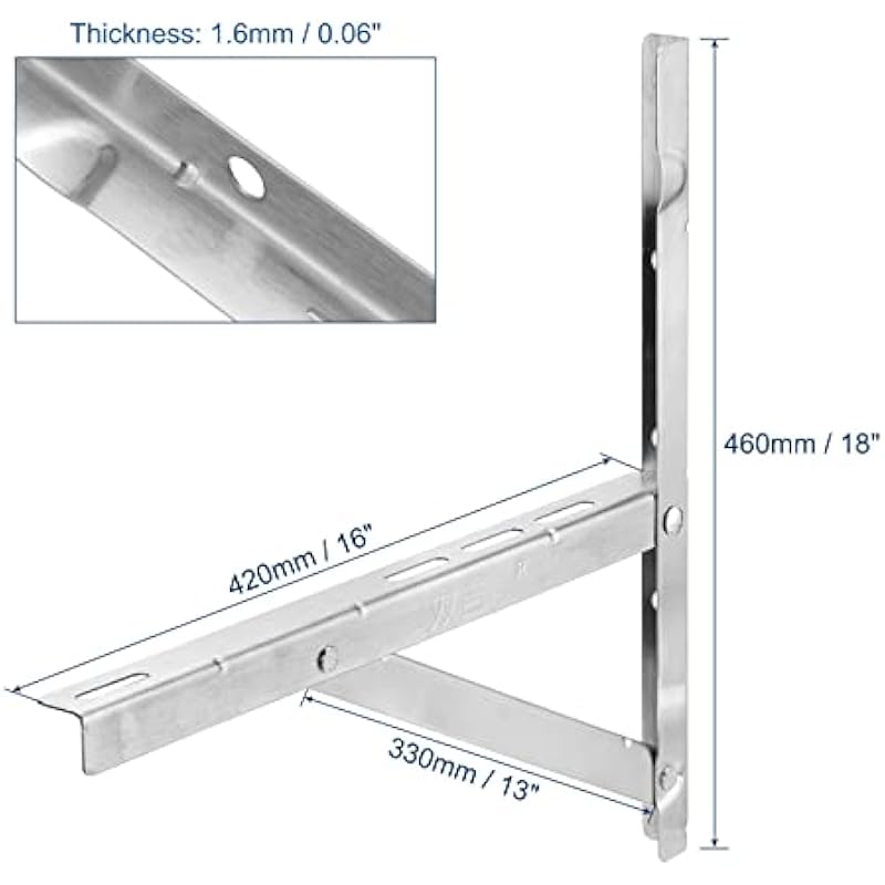 - Sturdy Construction: The air conditioner bracket is made of thickened stainless steel, which is anti-rust, has a strong bearing capacity, is anti-oxidation, and has weather resistance. Triangular bracket, good stability, can hold bulky equipment. The foldable design makes installation effortless and easy to carry.