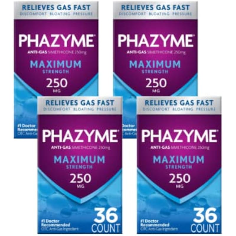 - Contains 4 boxes of Phazyme Maximum Strength Gas Relief, 36 Fast Gels in each box