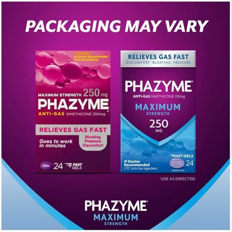 - Contains 3 boxes of Phazyme Maximum Strength Gas Relief, 24 Fast Gels