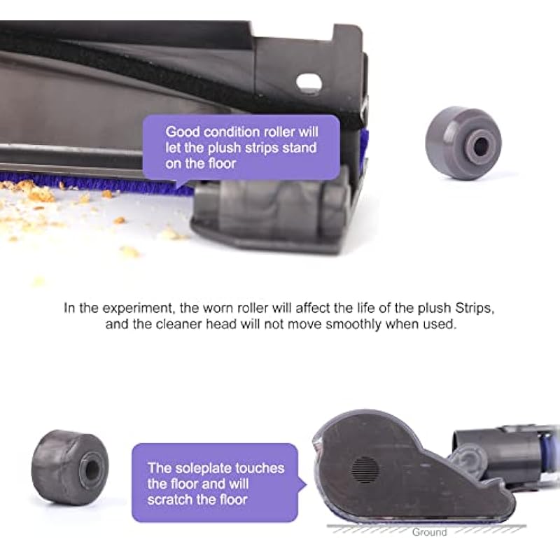 - Perfect Compatibility: The felt strips with wheels set are perfect replacement compatible with Dyson V6 V7 V8 V10 V11 (the Wheels ONLY Suitable for Soft Roller Head for Hardwood Floor Cleaning,NOT Suitable for Roller Brush Head for Carpet Cleaning