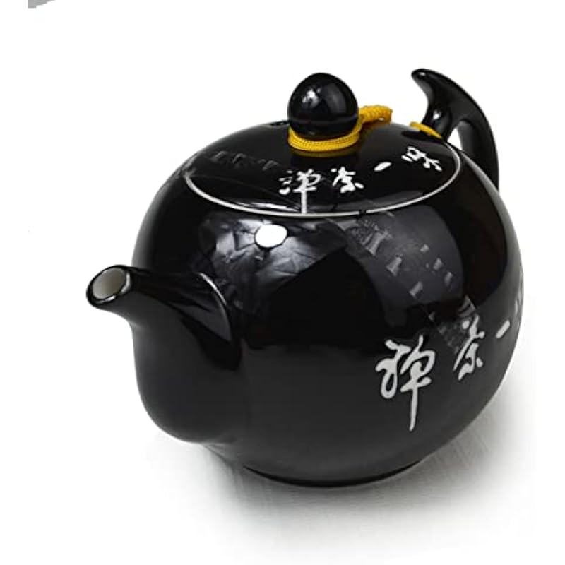- Ceramics black teapot :White glaze on the inside, black glaze on the outside, teapot painted with Chinese characters 茶禅一味(tea zen blindly).Teapot capacity: 10oz/300ml Smooth inside and outside, easy to clean.
