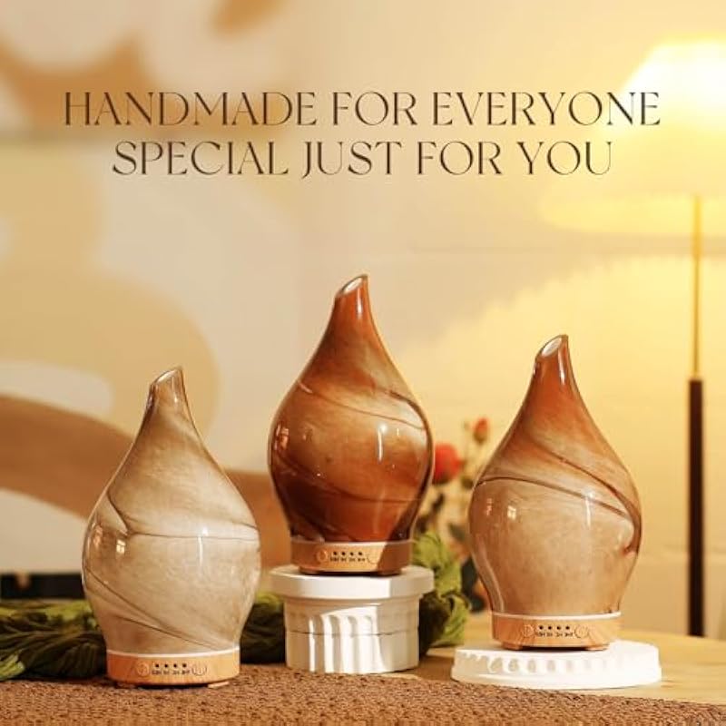 - UNIQUE ART DECORATIVE DESIGN – Our 150ml glass essential oil diffuser has an elegant starry pattern glass cover and wood grain decorative base. It is very suitable for your bedroom, living room, children’s room, study room, office, and yoga room.
