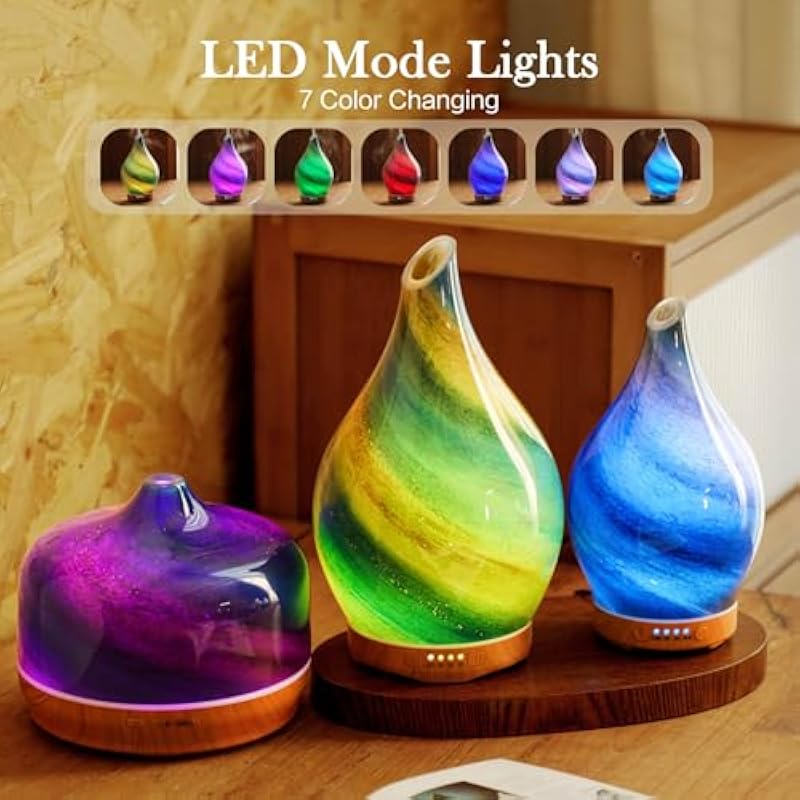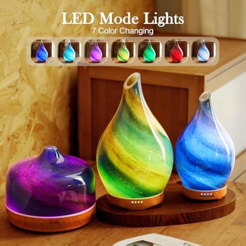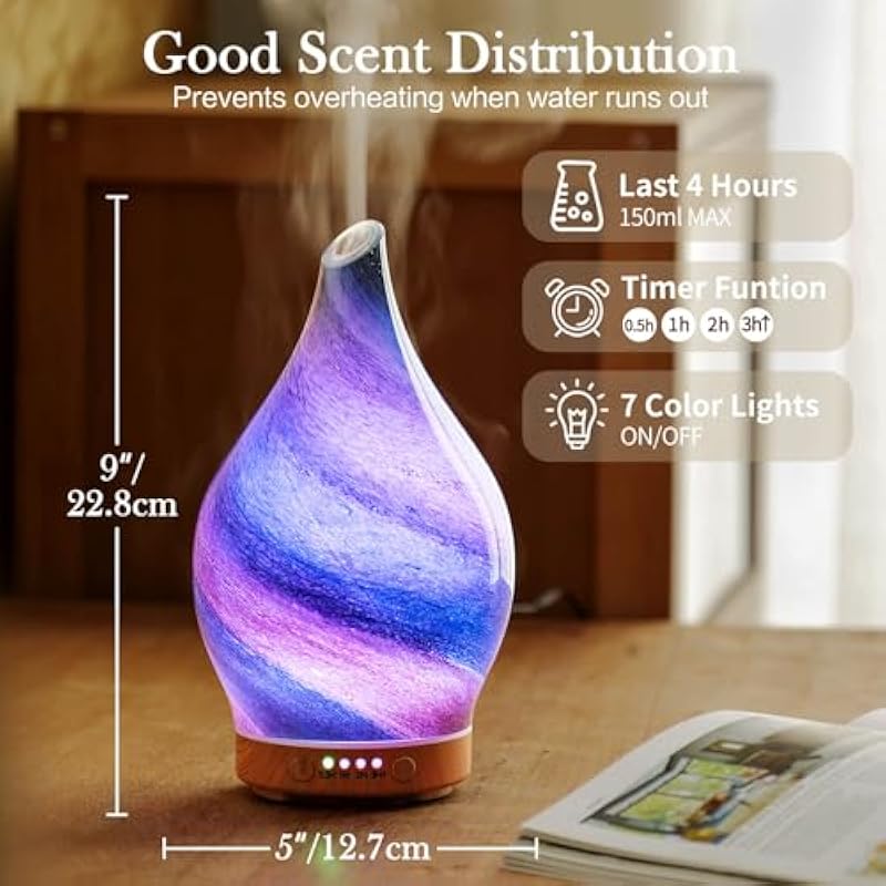 - UNIQUE ART DECOR – 150ml glass essential oil diffuser with star-shaped glass cover & wood grain base. Adds artistic harmony to your living space, perfect for bedrooms, living rooms, kids’ rooms, studies, offices, & yoga studios. Enhances ambience